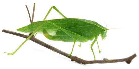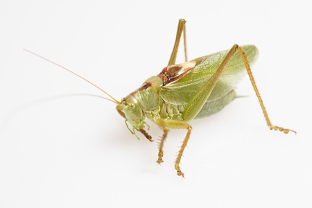 Single green grasshopper tropical insect isolated on white background , clipping path