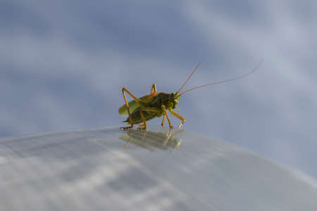 green locust on the blue sky background
