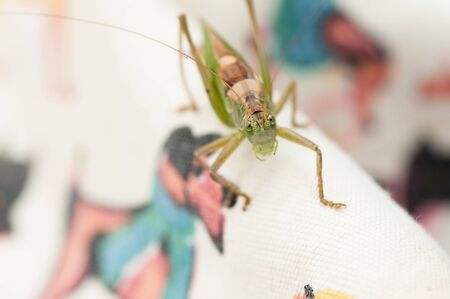 Macro photo of tailed bush cricket Barbitistes constrictus