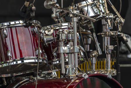 Drum kit on the stage, closeup