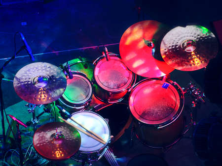 Live music background. Drum on stage.Concert and night lifestyle