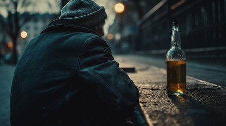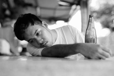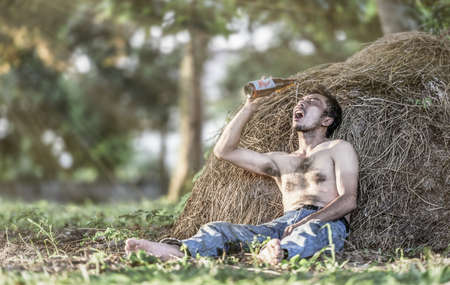 Alcoholism : Lonely and desperate drunk man
