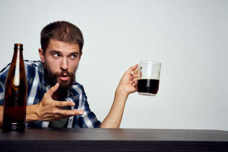drunk man drinking beer alcohol emotion light background