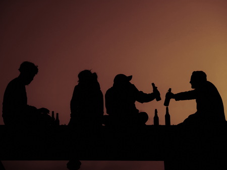 Silhouette of four friend drinking beer