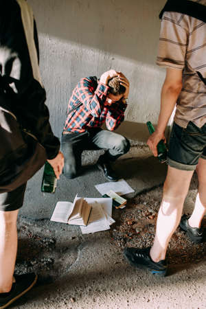 modern teenage social problems. geeks vs low-grade students opposition. drinking alcohol bad habits. mockery and humiliation concept