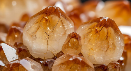 Gemstone Artichoke quartz and its texture, transparent, with an orange tint.