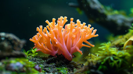 AI Generated. Vibrant coral polyps underwater reef closeup
