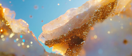 Colorful rock candy crystals shining under bright blue sky