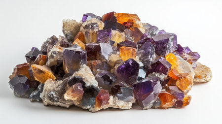multicolored amethyst semigem geode crystals geological mineral isolated