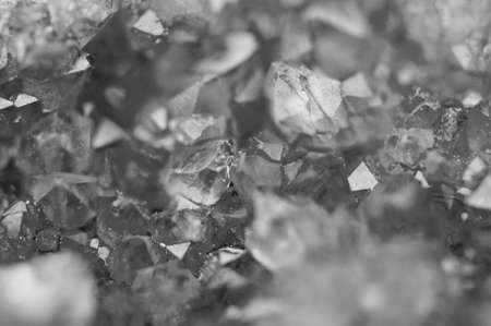 Black and white background of the crystals surface. Macro closeup.
