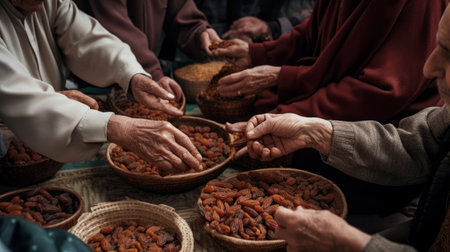 people sharing some dried dates Eid al Adha the Feast of Sacrifice Generative AI