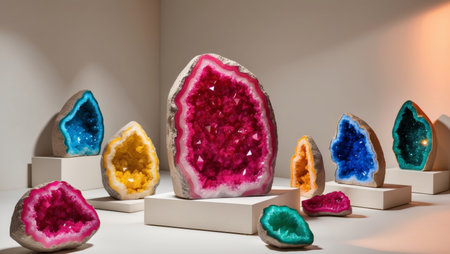 AI Generated. Colorful Geode Crystals Displayed in Natural Light
