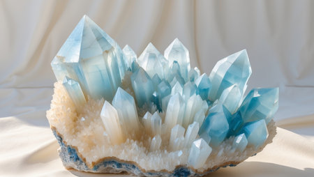 This image showcases a breathtaking crystal formation, highlighting its intricate details and the play of light across its surfaces. The composition emphasizes the natural beauty and geological wonder of the crystals.