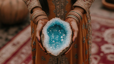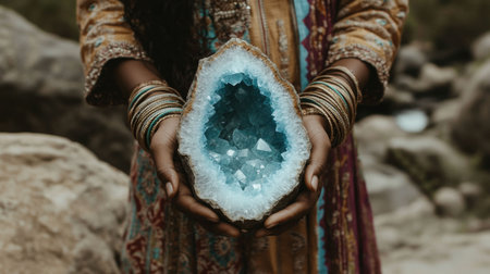 Turquoise Geode Held in Hands, Crystal Healing, Holistic Energy