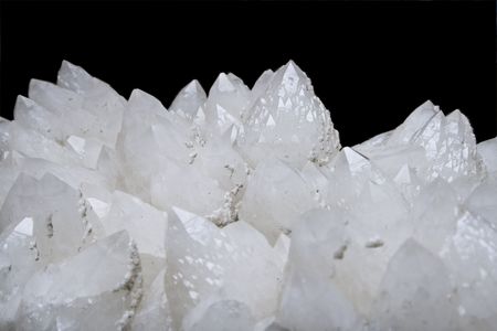 Close-up of a crystal of quartz on a black background