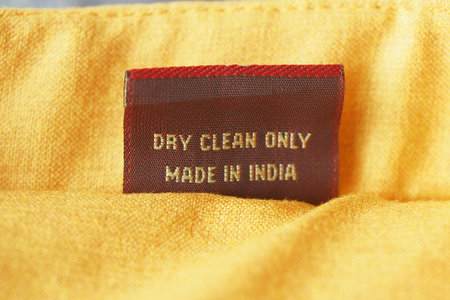 Care label showing dry clean instructions on fabric
