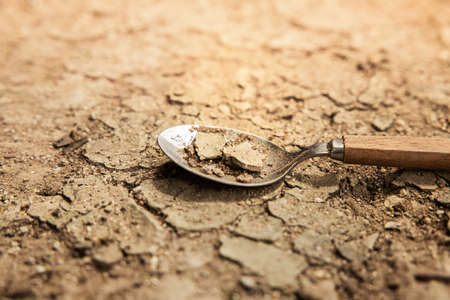 World Food Problem Concept. Environmental Impact. Global Issues in Agricultural Food Production. Cracked Soil, Desertification, Water, Pollution, Energy and Climate Change