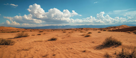 AI Generated. A desert landscape with a blue sky and clouds