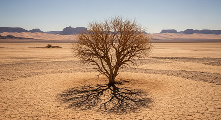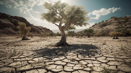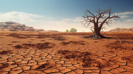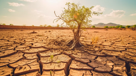 AI Generated. Desert pollution impact a bare tree in a parched landscape under a harsh sun