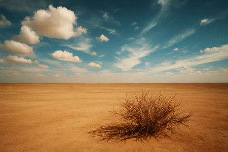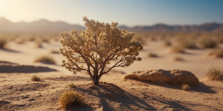 AI Generated. A solitary bush in the vast desert landscape