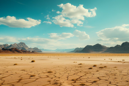 AI Generated. Desolate desert landscape with cracked earth and