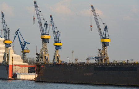 Hamburg / Germany - February 21, 2017: Shipyard in the Port of Hamburg, Germany