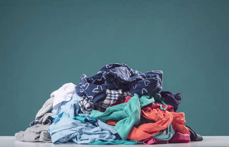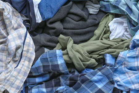Heap of crumpled dirty clothes, laundry and household chores concept