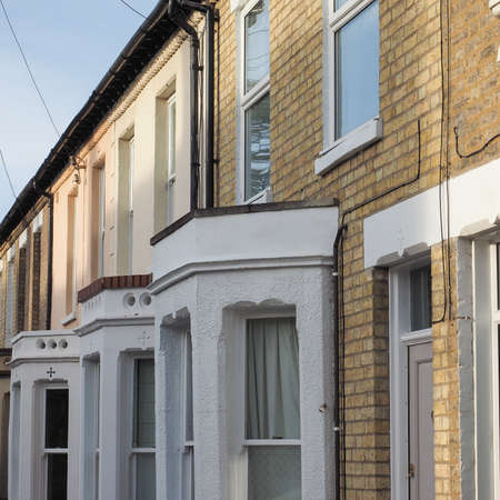 London/UK - 22/07/19: facade of a house in Lancaster Mews in Bayswater, an affluent area within the City of Westminster. It is also one of London's most cosmopolitan areas