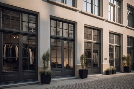 Modern Clothing Boutique Exterior with Large Window Display and Contemporary Interior Design, Ideal for Fashion Retail Concepts and Shopping Experiences. Generative AI