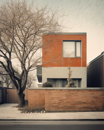 An unassuming facade with a bold and unexpected pop of color. AI generated illustration