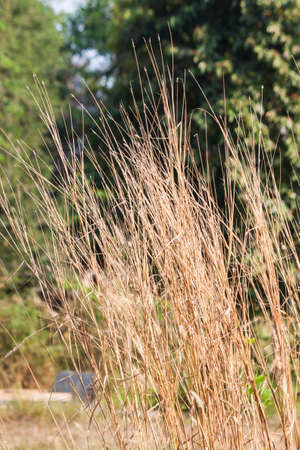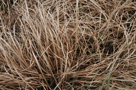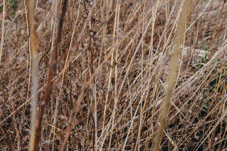 Backdrop closeup details of dried summer yellow grass hay in the park