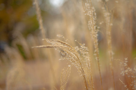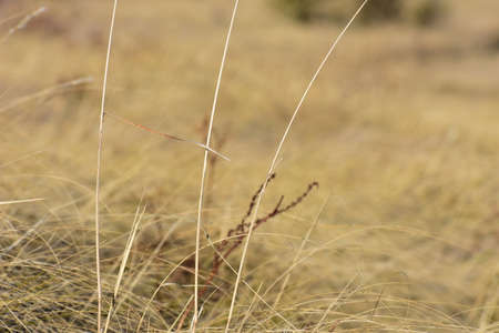 dry grass field, focus on foreground, bokeh for background, outdoors