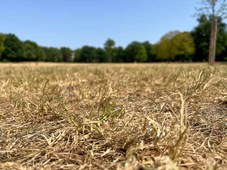 Brown dry grass on a meadow in Berlin public park Hasenheide during a hot summer day.
