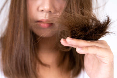 unhealthy hair upset woman bad treatment split
