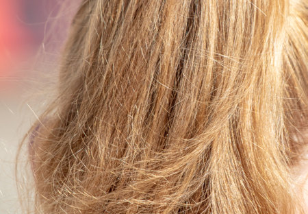 Close up of frayed hair tips revealing split ends and highlighting various shades of color against a soft background, perfect for beauty exploration.