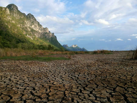 Drought makes The wetland dry and become cracked land , The drought of wetland on June 13,2016,Sam Roi Yot National Park , Prachuap Khiri Khan,Thailand