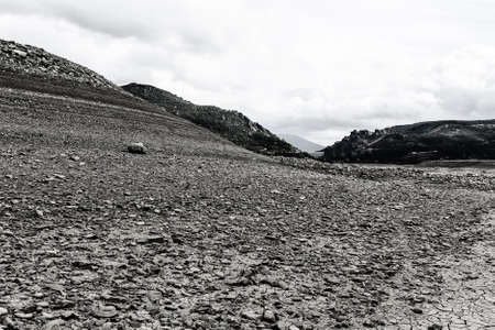The bottom of the empty Studena dam near Pernik, Bulgaria. Hot weather and climate changes makes the dam almost empty. Climate disaster.
