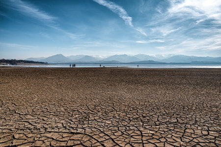 Dry and cracked earth during drought on lake Liptovska Mara in Slovakia