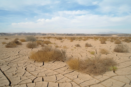 Warm dry cracked land with dead cropps, climate change concept with extreme heat