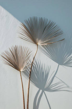AI Generated. Palm Fronds Casting Shadows on a Light Blue Wall