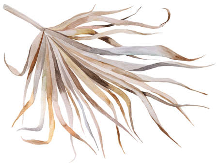 Brown Watercolor dried palm leaf, tropical Bohemian illustration isolated. Beige design Element for wedding design, greeting cards and crafting