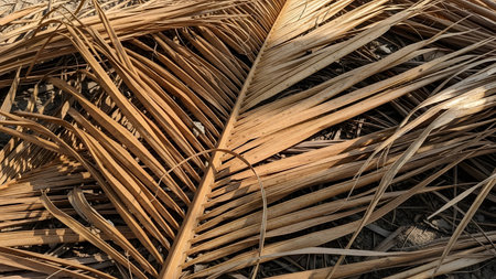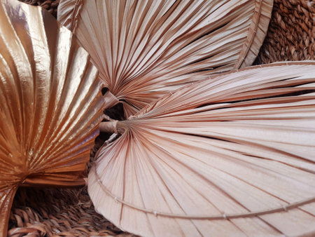 Explore the intricate textures and warm hues of dried palm fronds, offering a natural and organic element for creative projects.