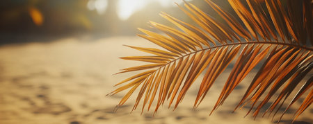 Golden sunlight dapples a serene beach, casting elegant palm leaf shadows This tropical paradise captures coastal bliss with sun-drenched shores and warm breezes, perfect for relaxation The nature photography evokes vacation vibes and peaceful serenity, a tranquil addition to any decor AI Generative