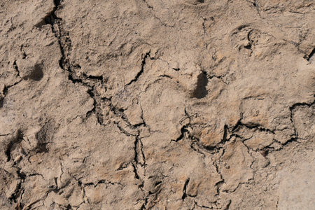 Texture of dry cracked soil loamy.