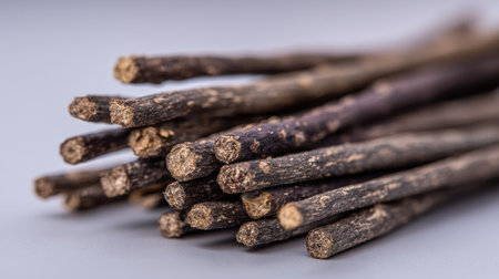 pieces of licorice root on the table - Glycyrrhiza glabra.