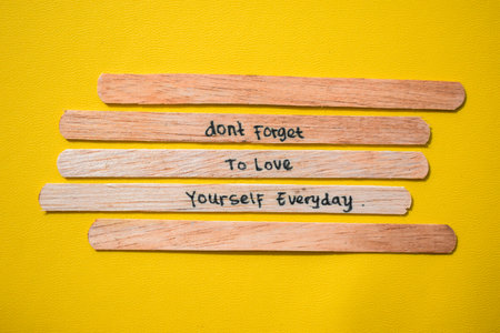 stick of ice cream with the words don't forget to love yourself everyday. Motivational quotes, optimism, positive words. Isolated on background