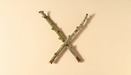 This image features an artistic arrangement of twigs and sticks placed on a bright blue background. It offers a minimalistic yet natural aesthetic, perfect for creative and environmental projects. The composition emphasizes the textures and shapes of the twigs, making it an ideal choice for various design purposes.