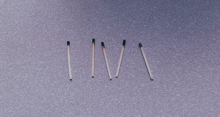 Set of burnt match at different stages on the kitchen home table