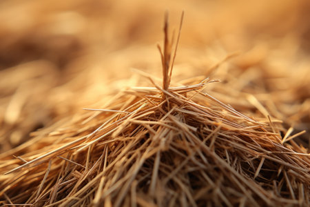 close-up shot of a haystack, displaying texture and details, created with generative ai
