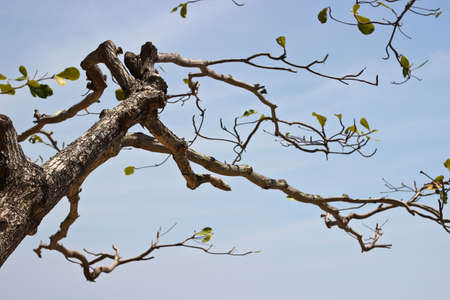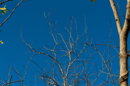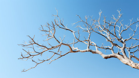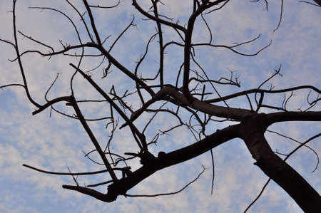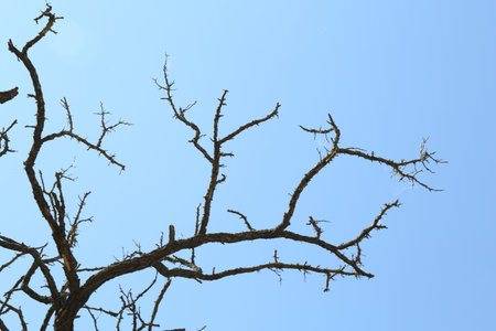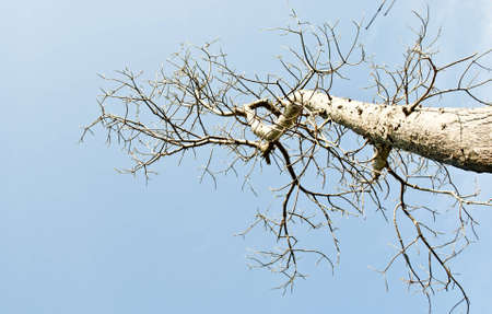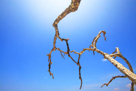 Dead tree isolated on blue sky background, Dead branches of a tree.Dry tree branch.Part of single old and dead tree on blue sky background.